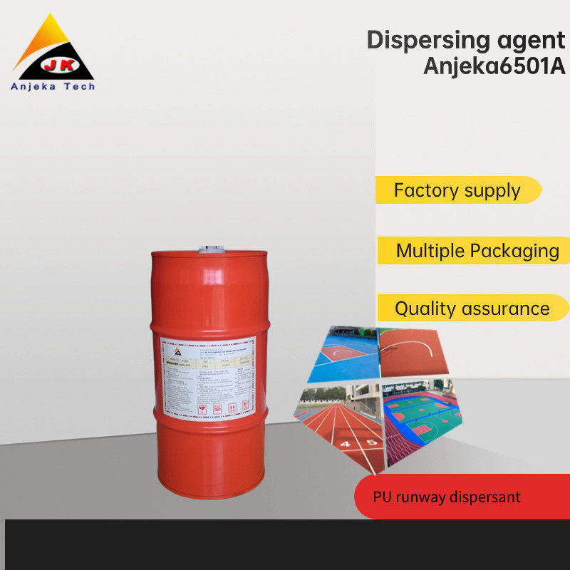 Anjeka 6501A es un agente de humedecimiento y dispersión diseñado para recubrimientos de pista a base de disolventes y sin disolventes. Estabiliza los pigmentos inorgánicos, reduce significativamente la viscosidad de los recubrimientos de pista,y mejora las propiedades de humedecimiento, mejorando efectivamente la adhesión entre capas.