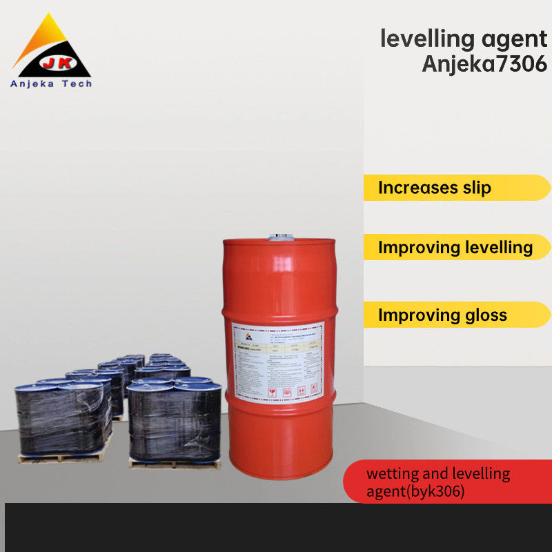 ANJEKA-7306 es un aditivo de superficie diseñado para el curado a temperatura ambiente de sistemas plásticos y sistemas de recubrimiento a base de disolventes que contienen organosilicio.excelencia en la humedecimiento de sustratos, evitando agujeros de contracción y mejorando la suavidad de la superficie.